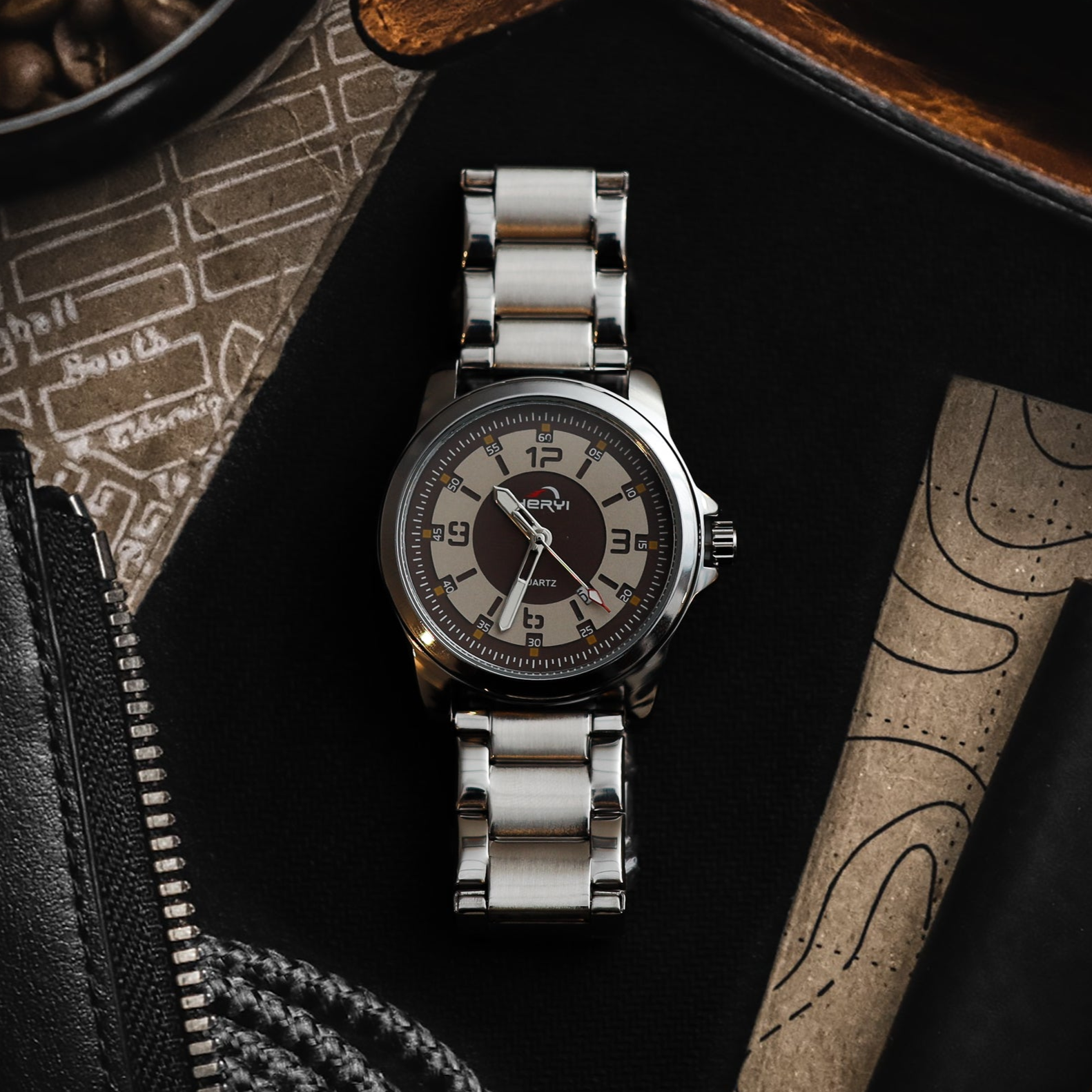 The Heryi Classic offers a rugged yet stylish look. With its large Arabic numerals, and precise quartz movement, this watch is built for reliability. The sturdy stainless steel strap makes it suitable for daily wear, whether at work or outdoors.
